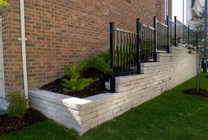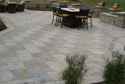 PAVING: StoneTile Abruzzo in Caramel Ferrous BORDER: StoneTile Piazza in Shale Black with an Impressa finish WALL: Antique XL Pro Wall in Desert Grey Blend |